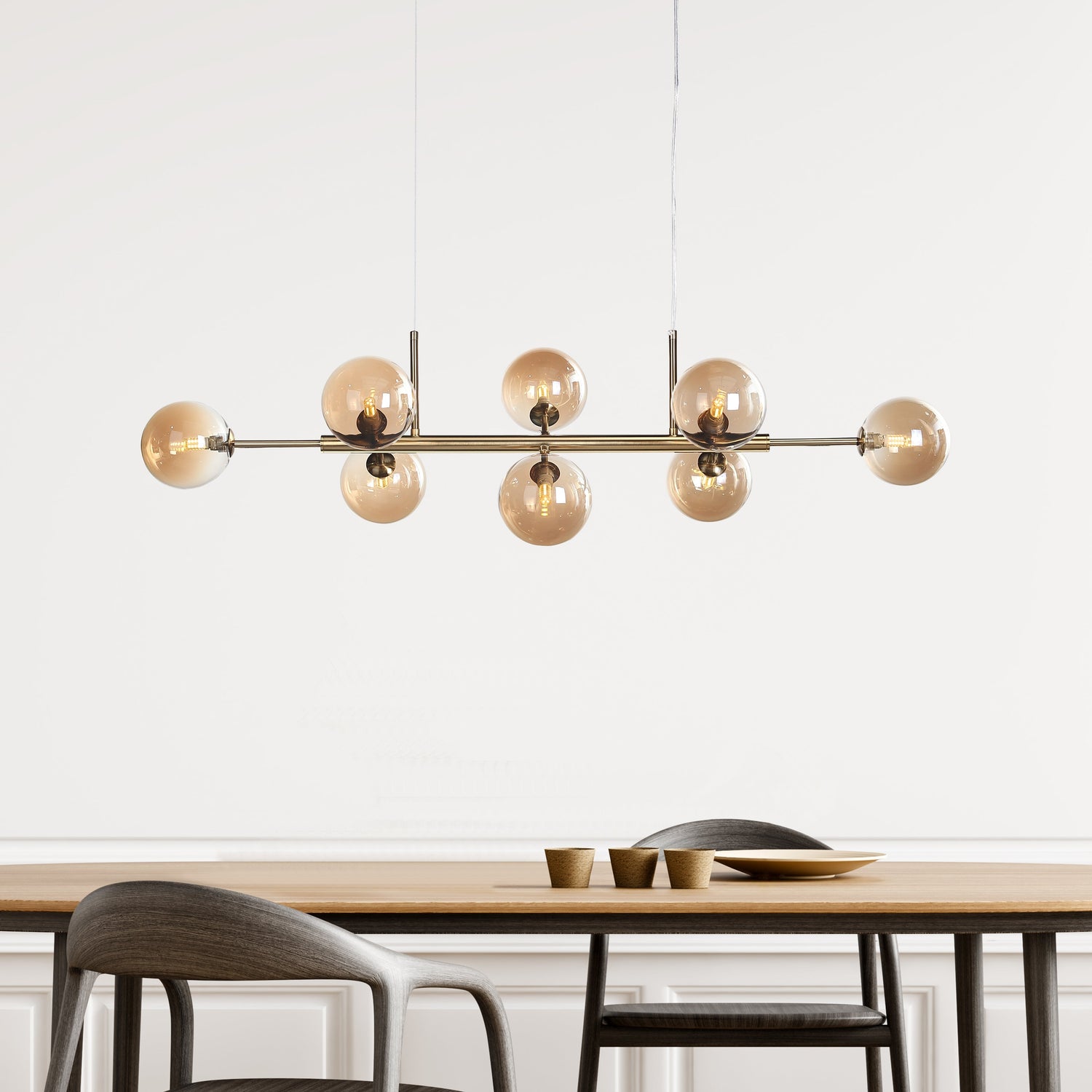 Seti Lange Hanglamp Geborsteld Messing/Amber Het product is momenteel niet op voorraad en wordt verzonden zodra het weer beschikbaar is.